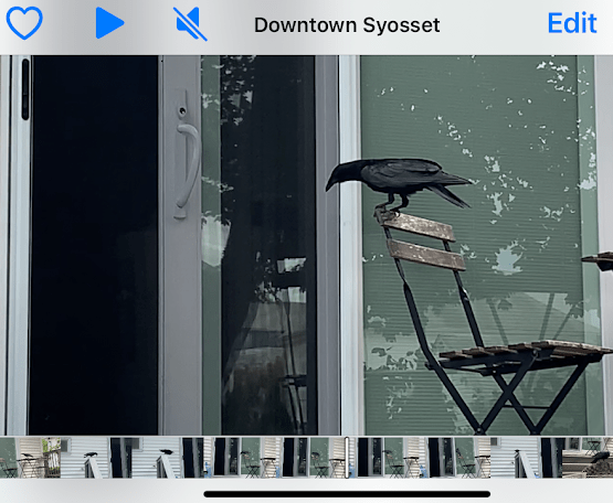 I observed the bird while sipping my coffee. I got curious and decided to capture the moment on my phone. The crow lingered on the gutter for less than a minute, and finally, it descended on to the chair in front of the patio door and peered inside the house.